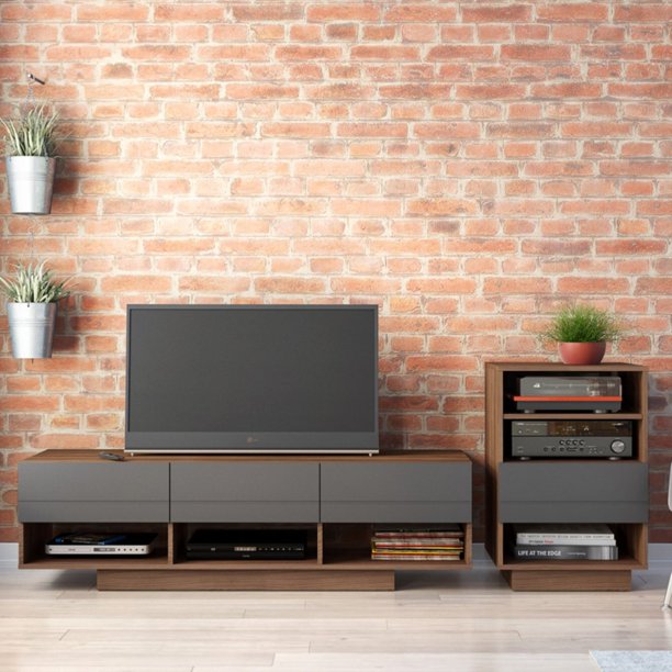 Nexera Audio Cabinet - Nexera Radar 1-Drawer Audio Cabinet, Walnut and Charcoal ... / Le cabinet et aussi équipé d'un dos amovible afin de faciliter l'accès.